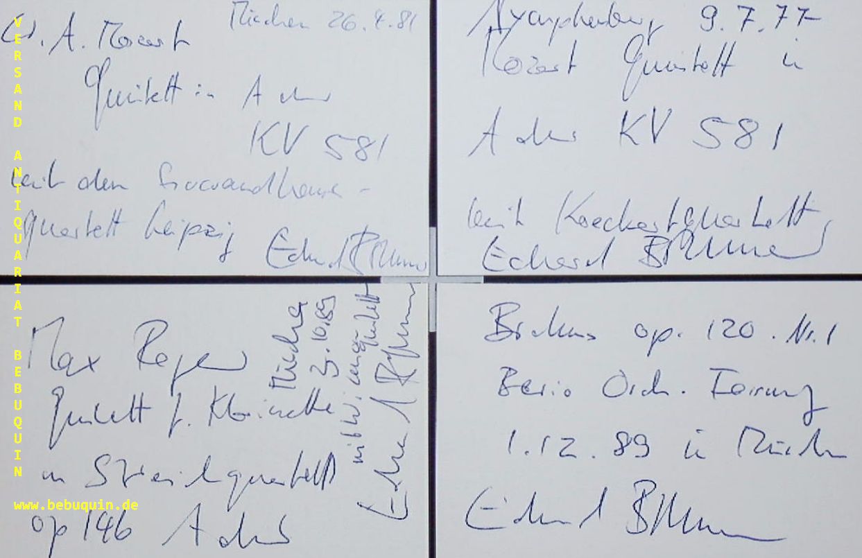 BRUNNER, Eduard (Klarinettist): 4 eigenhändig signierte und datierte Autogrammkarten. München (Philharmonie), 1977 – 1989. 8 x 12,5 cm. 4 Karteikarten. Eduard Brunner (* 14. Juli 1939 in Basel; † 27. April 2017 in München) war ein Schweizer Klarinettist und Hochschullehrer.