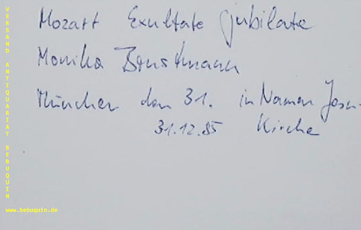 BRUSTMANN, Monika (Sopran): eigenhändig signierte und datierte Autogrammkarte. München (Namen Jesu Kirche), 31.12.1985. 8 x 12,5 cm. Karteikarte.