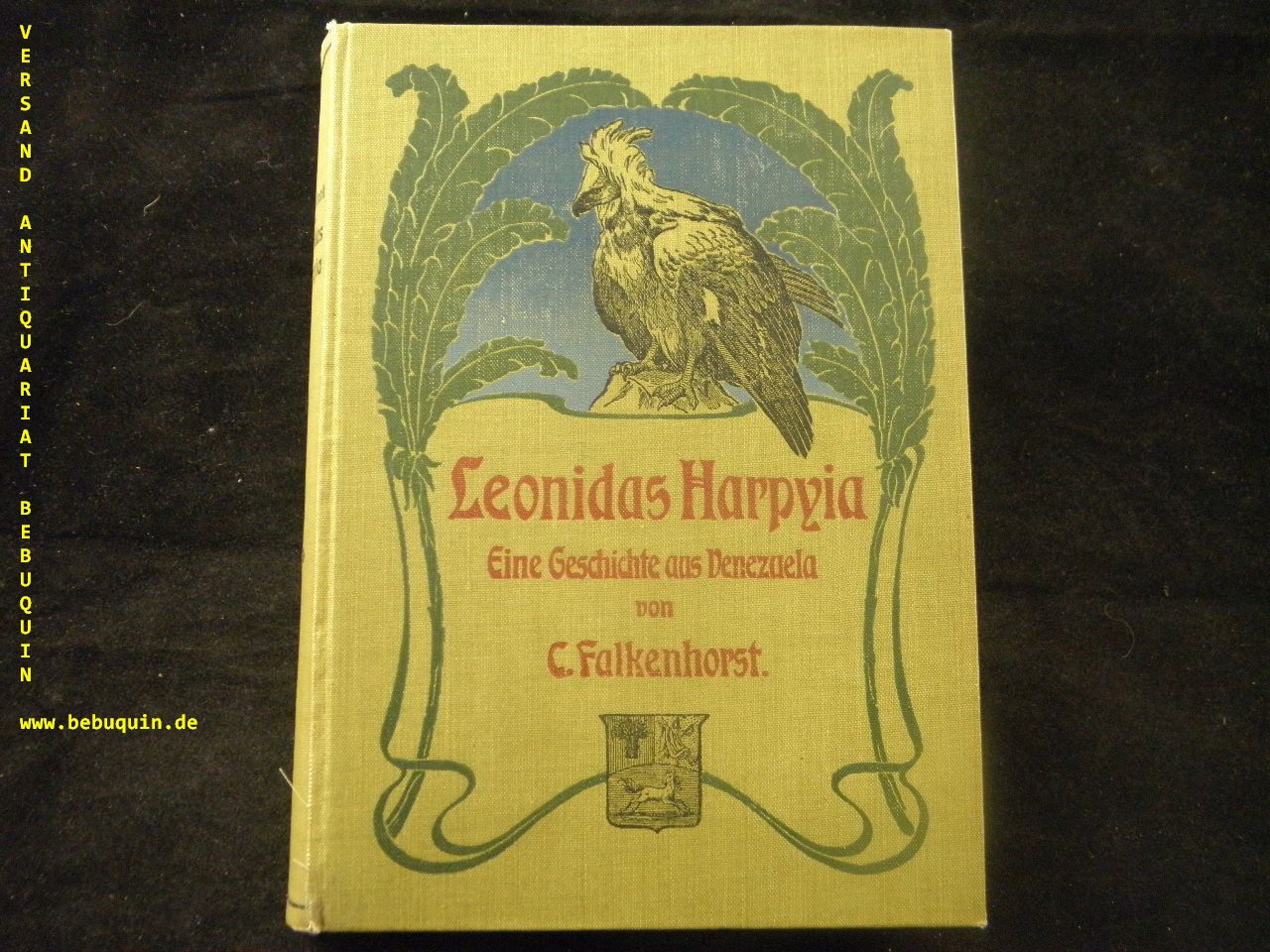 FALKENHORST, C.: Leonidas Harpyia. Eine Geschichte aus Venezuela. Dresden (Köhler), (1903). 240 (4) S. mit zahlr. Bildern. reich verzierter OLn. mit Jugendstilgestaltung. fast tadellos. EA. Klotz 1294/16.