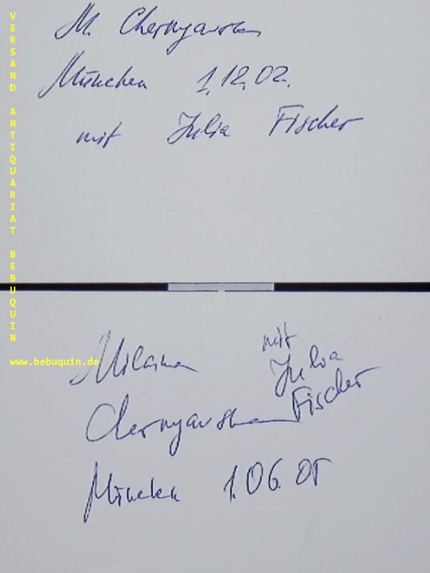 CHERNYAVSKA, Milana (Pianistin): 2 eigenhändig signierte und datierte Autogrammkarten: Mit Julia Fischer. München (Herkulessaal), 1.12.2002 + 1.6.2005. 8 x 12,5 cm. 2 Karteikarten