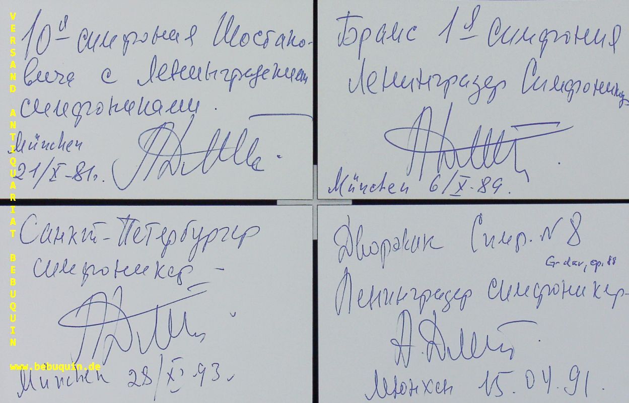 DMITRJEV, Alexander (Dirigent): 7 eigenhändig signierte Autogrammkarte mit teils ausführlichen eigenhändigen Stückbeschreibungen. München (Herkulessaal), 1981 – 2009. 8 x 12,5 cm. 7 Karteikarte.