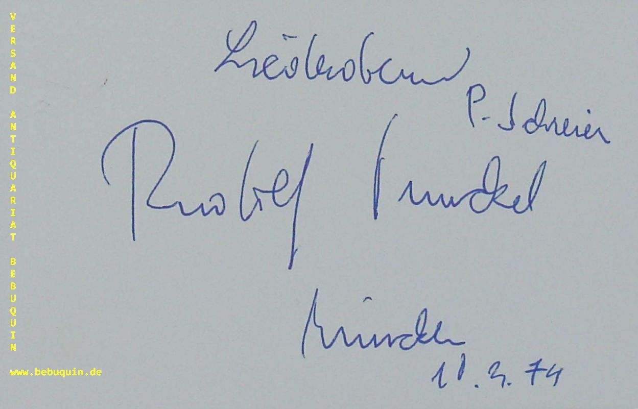 DUNCKEL, Rudolf (Pianist): eigenhändig signierte und datierte Autogrammkarte als Begleitung von Peter Schreier. München (Philharmonie), 10.3.1974. 8 x 12,5 cm. Karteikarte. Rudolf Dunckel (10.03.1922 – 16.12.1995) studierte an der damaligen Akademie für Musik und Theater Dresden in der Meisterklasse von Prof. Schaufuß-Bonini. Über viele Jahre wirkte er als Professor für Klavier an der Hochschule für Musik „Hanns Eisler“, Berlin.