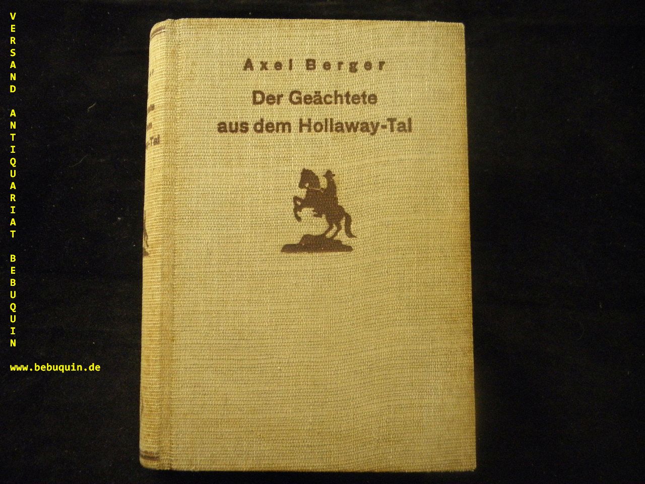 BERGER, Axel: (d.i. Albert Karl Burmester) Der Geächtete aus dem Hollaway-Tal. Bremen (Burmester), (1936). 256 S. ill. OLn. leicht gebräunt. = Burmester’s Abenteuer-Serie. seltene EA. Schegk / Wimmer S21.