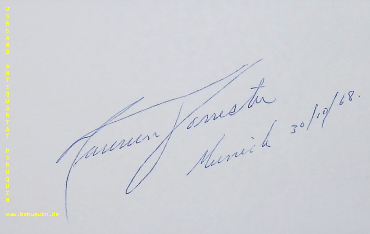 FORRESTER, Maureen (Alt): eigenhändig signierte und datierte Autogramkarte. München (Philharmonie), 30.10.1968. 8 x 12,5 cm. Karteikarte. Maureen Forrester, CC, OQ, O.Ont (* 25. Juli 1930 in Montreal, Québec; † 16. Juni 2010 in Toronto) war eine kanadische Opernsängerin in der Stimmlage Alt. (Wikipedia)