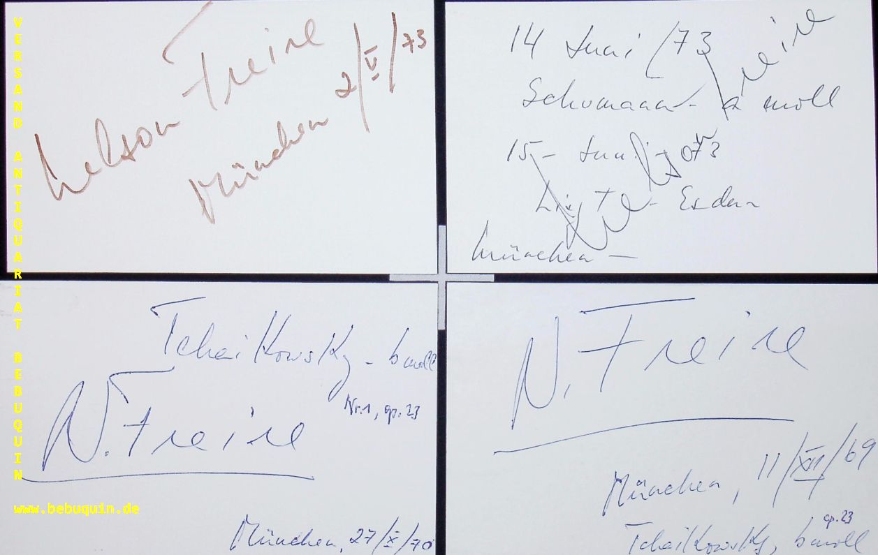 FREIRE, Nelson (Pianist): 7 eigenhändig signierte und datierte Autogrammkarte. München (Philharmonie), 1969 – 1979. 8 x 12,5 cm. 7 Karteikarten.