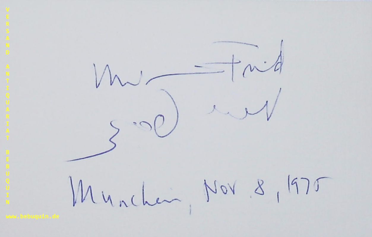 FRIED, eigenhändig signierte (zweisprachig) und datierte Autogrammkarte.