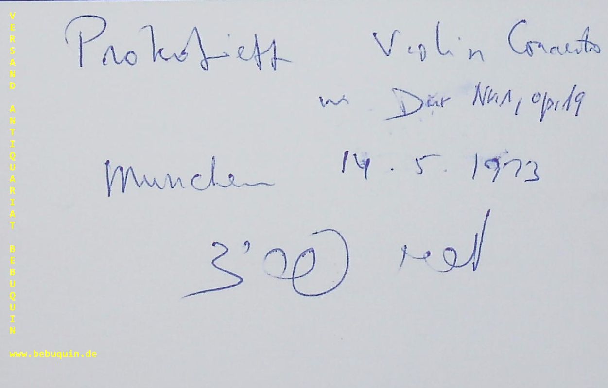 FRIED, Miriam (Violinistin): eigenhändig signierte und datierte Autogrammkarte. München (Philharmonie), 8.11.1975. 8 x 12,5 cm. Karteikarte. leichte Wischspuren.
