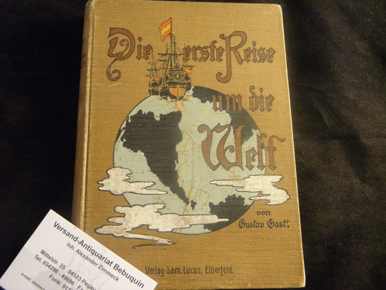 GAST, Gustav: Die erste Reise um die Welt. Nach den betreffenden Quellen der Jugend und dem Volke erzählt. Elberfeld (Lucas), ca 1905. VI, 198 S. mit 4 Illustrationen von Martin Ränike. ill. OLn. Einband gering berieben. seltene EA. nicht bei Kotz.