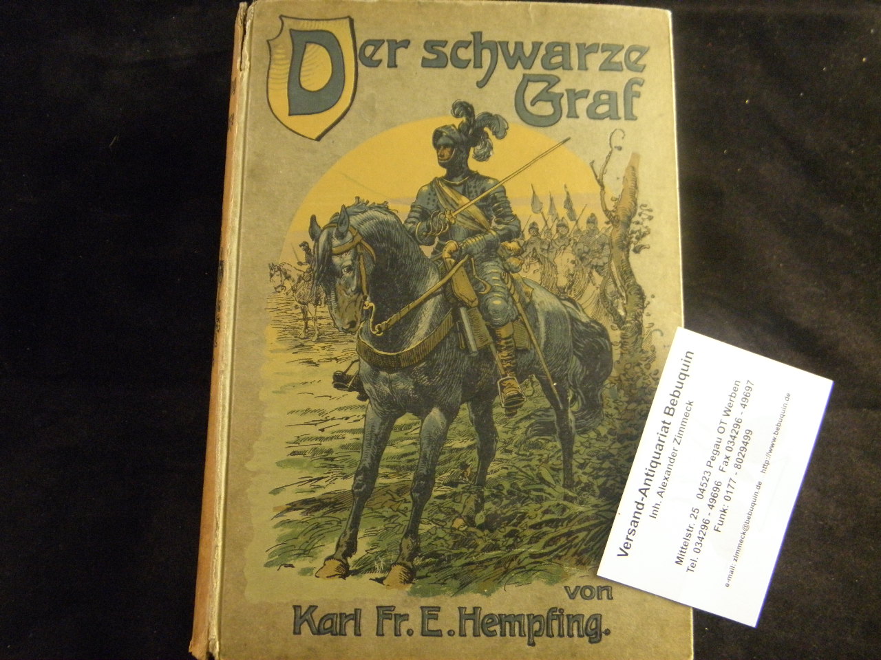 HEMPFING, Karl Fr. E.: Der schwarze Graf. Eine Erzählung aus dem Dreißigjährigen Kriege. 4. Aufl. Leipzig (Hirt), (1917). Gr. 8°. 271, 16 S. mit 8 Bildern von Hans W. Schmidt. farb. ill. OPb. Rücken gebräunt und etwas angeplatzt. sehr seltener Titel.