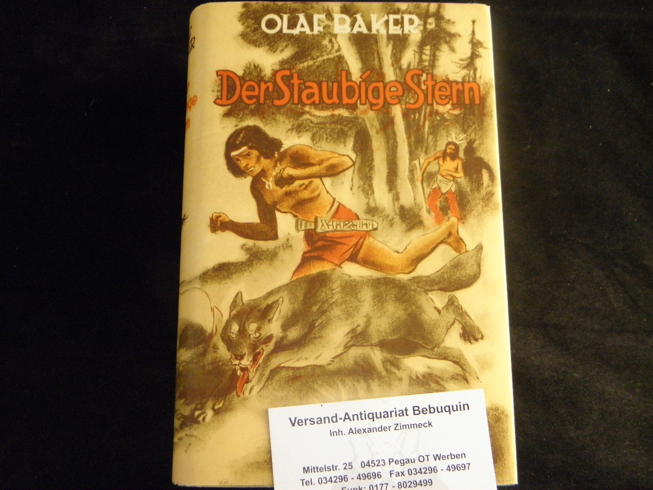 BAKER, Olaf: Der Staubige Stern. Ein Indianer- und Wolfsroman. D.v. Marguerite Thesing. 6.– 10. Tsd. Leipzig (Altenburg), 1936. 236 (3) S. OHLn mit OUmschl. WaV. 1. Aufl. dieser Ausgabe mit dem seltenen Umschlag. Klotz 227/2.