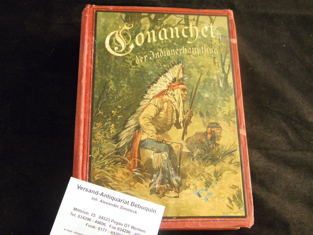 COOPER, James Fenimore: Conanchet, der Indianerhäuptling. Eine Erzählung für die reifere Jugend. D.v. Franz Hoffmann. 7. Aufl. Stuttgart (Thienemann), (1895). Gr. 8°. 229 (3) S. + 6 Farbendruckbildern und vielen Textabb. von W. Hoffmann. farb. ill. OHLn. Kanten etwas berieben, fliegender Vorsatz fehlt, NaV. 1. Aufl. in dieser Ausstattung. Klotz 916/35.