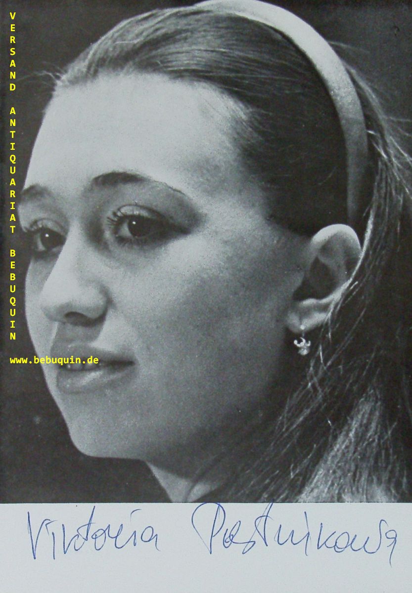 POSTNIKOWA, Victoria (Pianistin): eigenhändig signiertes Portrait aus Programmheft. München, o.J. 21 x 15 cm. 1 Bl. Wiktorija Walentinowna Postnikowa (* 12. Januar 1944 in Moskau) ist eine russische Pianistin. Sie war seit 1969 die Gattin und regelmäßige Konzert- und Aufnahmepartnerin des Dirigenten Gennadi Nikolajewitsch Roschdestwenski. (Wikipedia)