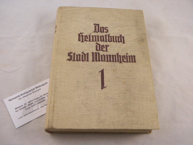 MANNHEIM.– HUPP, Friedrich: Das Heimatbuch der Stadt Mannheim. Manheim (Hakenkreuzbanner), 1939. Gr. 8!. XV, 600 S. mit zahlr. Bildtafeln. OLn. kaum bestaubt. EA.