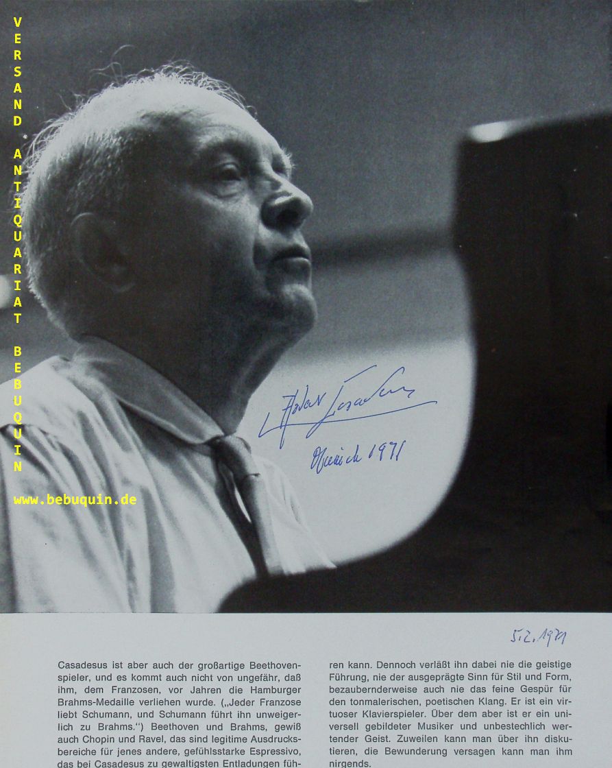 CASADESUS, Robert (Pianist): eigenhändig signiertes und datiertes großes Portraitbild. München, 5.2.1971. 26 x 21 cm. 1 Bl. Robert Marcel Casadesus (* 7. April 1899 in Paris; † 19. September 1972 ebenda) war ein französischer Pianist, Klavierlehrer und Komponist. (Wikipedia)
