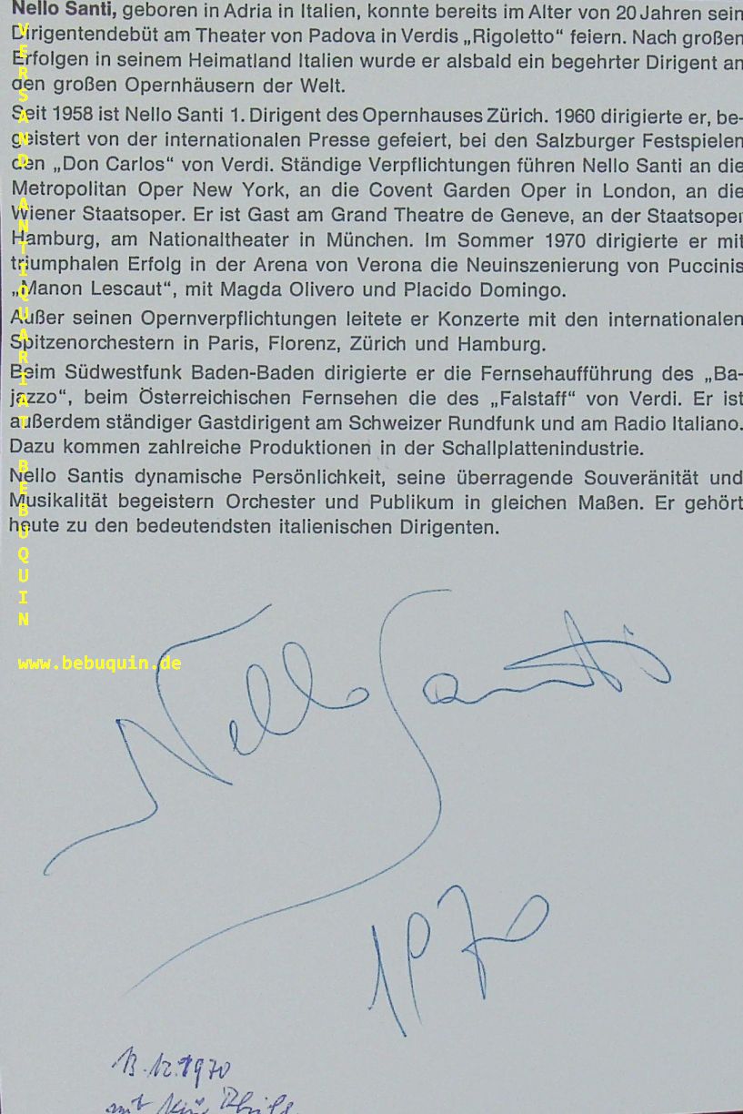 SANTI, Nello (Dirigent): eigenhändig signierter und datierter Zeitschriftenausschnitt. München, 13.12.1970. 18,5 x 12,5 cm. 1 Bl.