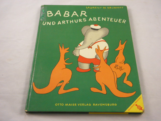 BRUNHOFF, Laurent de: Babars und Arthurs Abenteuer. D.v. Cornelie Lindemann. Ravensburg (Otto Maier), 1958. Fol. 46 S. mit farb. Bildern un der Schrift von Gisela Teufer. ill. OPb. zwei kleine Einrisse mit Tesa hinterlegt. 1. Aufl. dieser Ausgabe. (Mück 380)