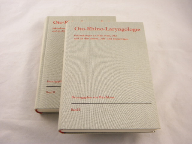 MEDIZIN.– MOSER, Fritz: (Hrsg.) Oto-Rhino-Laryngologie. Erkrankungen an Hals, Nase, Ohr und an den oberen Luft- und Speisewegen. 2 Bände. Jena (Gustav Fischer), 1986. Gr. 8°. 481, 508 S. mit zahlr. Abb. OLn. tadellos. EA.