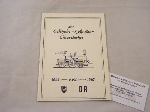 LEIPZIG.– WÖNCKHAUS, Volker + HÜLLE, Siegfrid: Die Geithain-Leipziger-Eisenbahn 1887 – 1987. Eine Betrachtung der Eisenbahnstrecke Geithain – Bad Lausick – Leipzig in ihrer 100jährigen Entwicklung. Leipzig, 1986. 28 S. mit zahlr. Abb. ill. OPb. tadellos. EA.