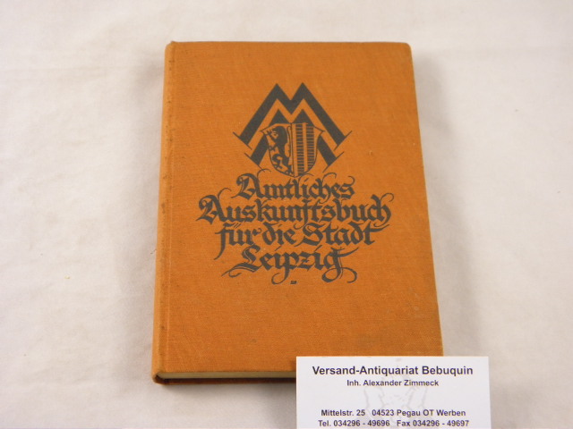 LEIPZIG.– ENGEMANN: (Bearb.) Amtliches Auskunftsbuch für d. Stadt Leipzig. Hrsg. v. Polizeipräsidium Leipzig, Messamt für d. Mustermessen u. d. Grossen Leipziger Strassenbahn. Leipzig (Moritz Ruhl), 1925. 272 S. mit Abb. ill. OLn. kaum bestaubt. EA.