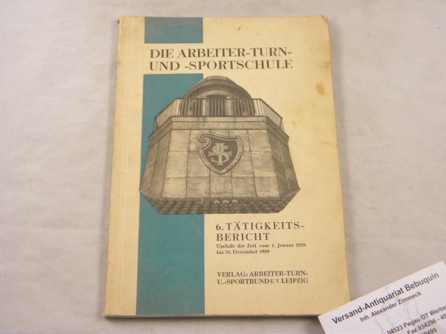 LEIPZIG.– DIE ARBEITER – TURN – UND – SPORTSCHULE.– Der sechste Tätigkeits-Bericht umfaßt die Zeit vom 1. Januar 1928 bis 31. Dezember 1929. Erstattet von der Schulleitung. Leipzig, 1930. 103 S. mit zahlr. Bildtafeln. ill. OKart. leicht bestaubt. EA.
