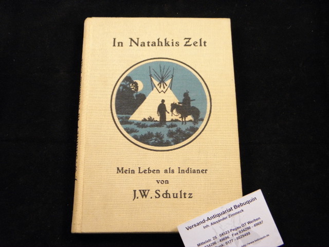 INDIANER.– SCHULTZ, J.W.: In Natahkis Zelt. Mein Leben als Indianer. D.v. Elisabeth Friederichs. Hamburg (Ernte), 1925. 158 (2) S.mit Bildernund Bucgschmuck von Frederick Weygold. farb. ill. OLn. Bild auf Vorsatz montiert.
