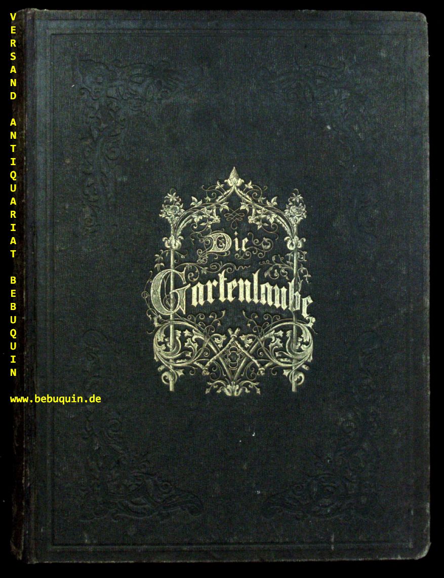 DIE GARTENLAUBE.– Illustrirtes Familienblatt. Jahrgang 1861. Leipzig (Keil), 1861. 4°. V, 832 S. mit zahlr. Holzstichen im Text und auf Tafeln. OLn mit Gold- und Blindprägung etwas bestaubt, gutes Ex. = 9. Jg.