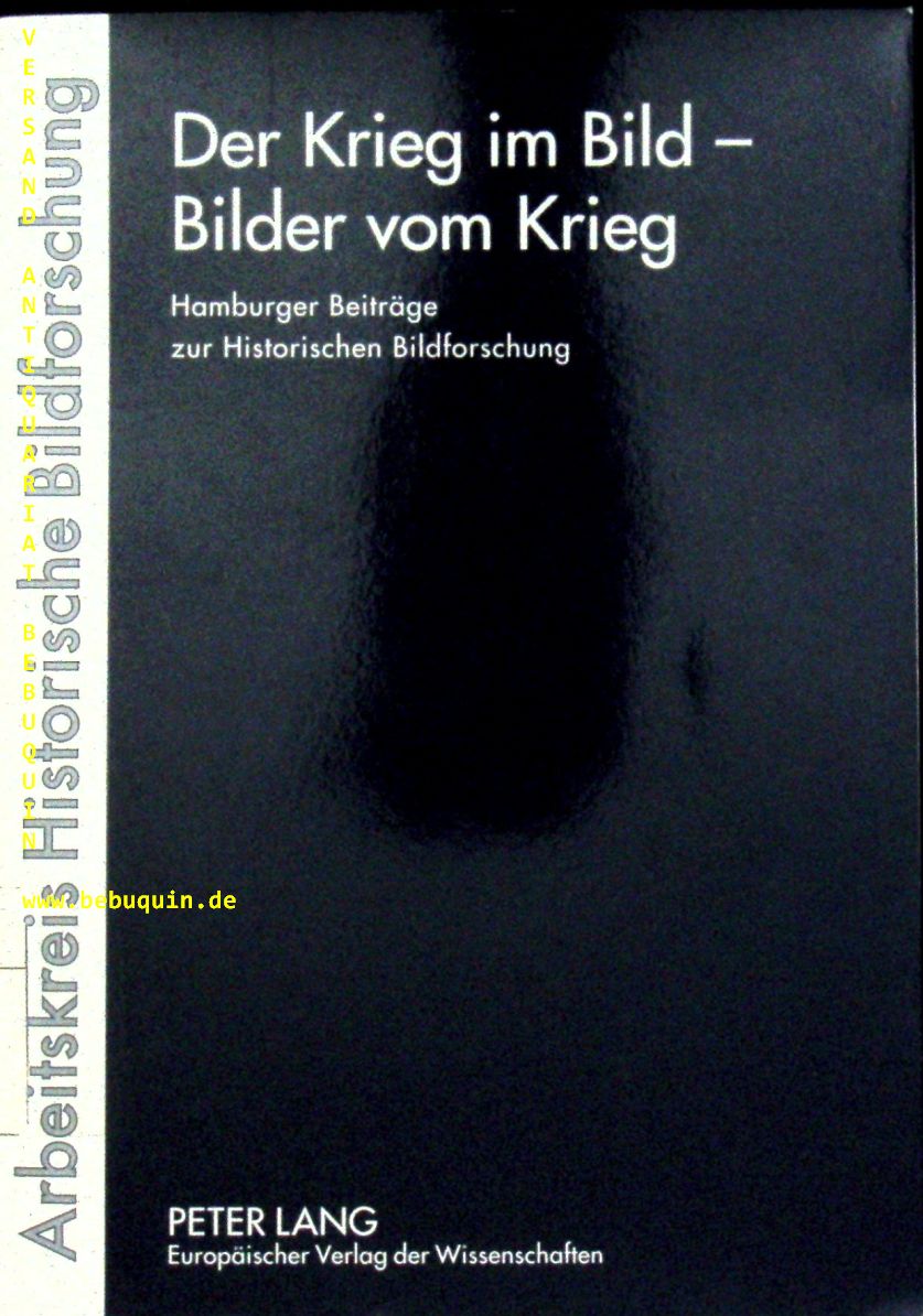 ARBEITSKREIS HISTORISCHE BILDFORSCHUNG: (Hrsg.) Der Krieg im Bild – Bilder vom Krieg. Frankfurt (Lang), 2003. 276 S. mit zahlr. Abb. OKart. Ordnungsgemäß aus Bundeswehrbeständen ausgesondertes Bibliotheksexemplar (Stempel und Rückenschild), leicht schief gelesen. seltene EA.