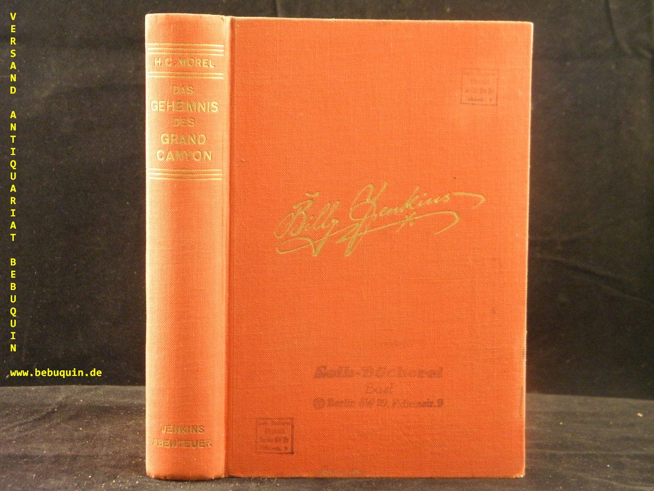 BILLY JENKINS.– 037 / MOREL, H.C.: Das Geheimnis des Grand Canyon. Ein Abenteuer des Westmannes Billy Jenkins. Leipzig (Dietsch), 1938. 285 (3) S. rotes OLn mit goldgeprägter Signatur. Leihbücherei-Stempel auf Einband und auf letzter Seite, sonst von feiner Erhaltung.. = Bücher der Spannung, Nr. 37. EA.