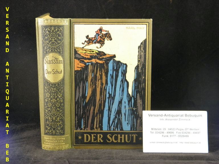 MAY, Karl: Der Schut. 226.– 260. Tsd. Radebeul (Karl May), (1940). 645 (2) S. farb. ill. OHLn. farbstarker Deckel mit goldglänzendem Rücken, kleiner Fleck auf Seite 3. = Gesammelte Werke, Bd.6. relativ seltene letzte und Kriegsausgabe Hermesmeier / Schmatz GW 6.28.