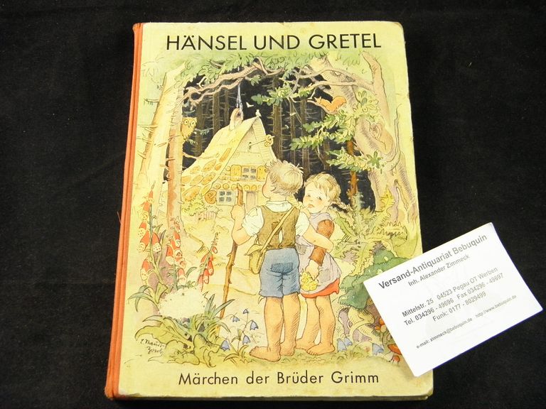 GRIMM, Brüder: Hänsel und Gretel und andere Märchen. Reutlingen (Ensslin & Laiblin), ca 1950. Gr. 8°. 61 (3) S. mit zahlr. Textzeichnungen und 1 farb. Titelbild von L. Staudt-Zoerb. farb. ill. OHLn. Kanten etwas bestoßen, Vorsätze fingerspurig. 1. Aufl. dieses seltenen Märchenbuchs.