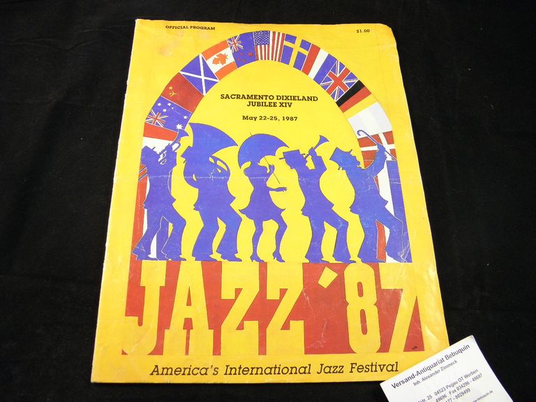 JAZZ.– SACRAMENTO DIXIELAND JUBILEE XIV. MAY 22-25, 1987.– Offizielles Programmheft des internationalen America Jazz Festivals. Sacramento, 1987. Fol. 44 S. mit zahlr. Bildern. ill. OKart. Handexemplar des Jazz Journalisten Dieter Zimmerle mit dessen Anstreichungen und Kommentaren.