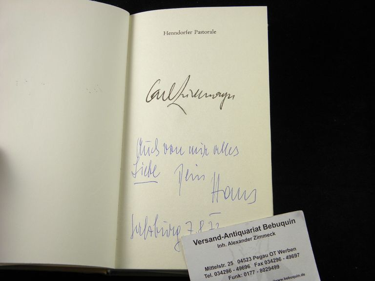 ZUCKMAYER, Carl: Henndorfer Pastorale. Salzburg (Residenz), 1972. 116 S. mit Zeichnungen von Clemens Holzmeister. OLn. mit OUmschl. weitere Widmung auf Vortitel.