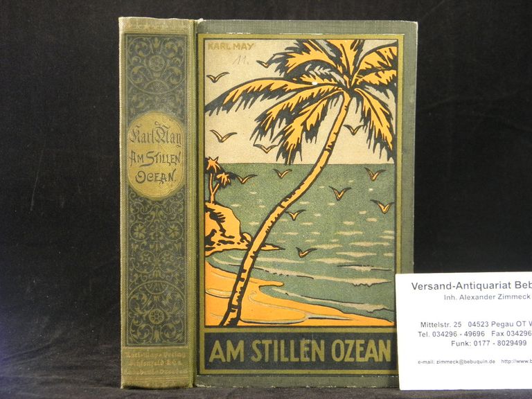 MAY, Karl: Am Stillen Ozean. Reiseerzählungen. 103.– 110. Tsd. Volksausgabe. Radebeul (Karl May), (1929). 607 (1) S. farb. ill. OHLn. farbstarker Einband, goldglänzender Rücken, eine Seite lose. = Gesammelte Werke, Bd. 11.
