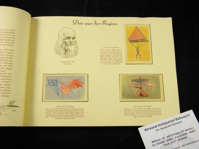 SAMMELBILDERALBEN.– DARBOVEN.– Geschichte der Luftfahrt. Hamburg (Darboven), 1955. Quer Gr. 8°. 64 S. mit 96 farb. Sammelbildern. farb. ill. OKart. Rücken klarsichtig überklebt, insgesamt gutes Ex.