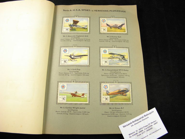 SAMMELBILDERALBEN.– GARBATY.– Die Eroberung der Luft II. Folge: Ausland. Berlin, 1932. 4°. 36 S. mit 216 farb. Sammelbildern. ill. OKart. ohne den Flugzeug-Modellbogen.