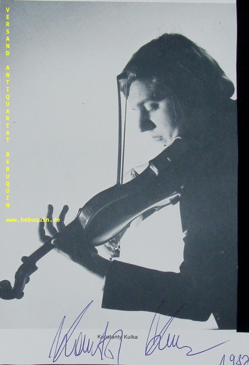 KULKA, Konstanty (Violinist): eigenhändig signierte und datierte Portraiseite. München (Kongresssaal), 13.10.1987. 19 x 13 cm. 1 Bl. Konstanty Andrzej Kulka (* 5. März 1947 in Danzig) ist ein polnischer Geiger. (Wikipedia)