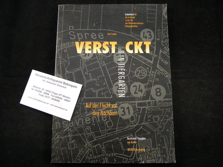 SCHILDE, Kurt: Versteckt in Tiergarten. Auf der Flucht vor den Nachbarn. Gedenkbuch für die im Bezirk in der Zeit des Nationalsozialismus Untergetauchten. Berlin (Weidler), 1995. Gr.8°. 183 S. mit Abb. ill. OKart. NaV. EA.
