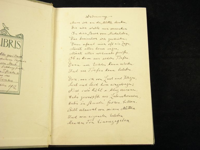 Mit einem 28zeiligen eigenhändigen signierten Verfassergedicht auf Vorsatz. “. . . Hab’s in Stunden frohen, bittern, / still erlauscht von meinen Müttern / und von eigenstem Erleben / manchen Ton hinzugegeben . . . „ Wohl ein textliches Unikat. Peter Dörfler (* 29. April 1878 in Untergermaringen; † 10. November 1955 in München) war ein deutscher katholischer Priester, Erzieher und Dichter. (Wikipedia)