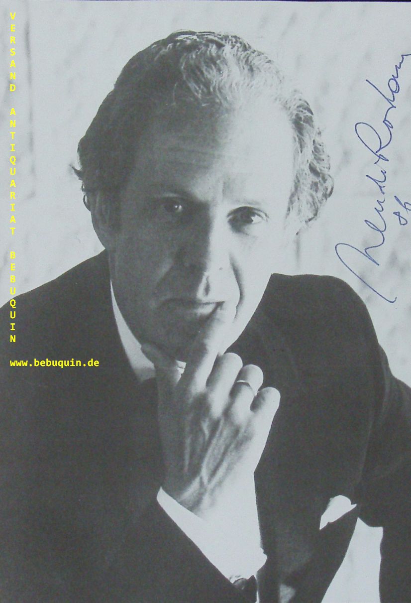 RODAN, Mendi (Violinist): eigenhändig signierte und datierte Portraitseite. München (Philharmonie), 1986. 21 x 14,5 cm. 1 Bl. sehr schön Mendi Rodan, geboren als Mendi Rosenblum, (* 17. April 1929 in Rumänien; † 9. Mai 2009 in Jerusalem) war ein israelischer Violinist und Dirigent rumänischer Herkunft. (Wikipedia)