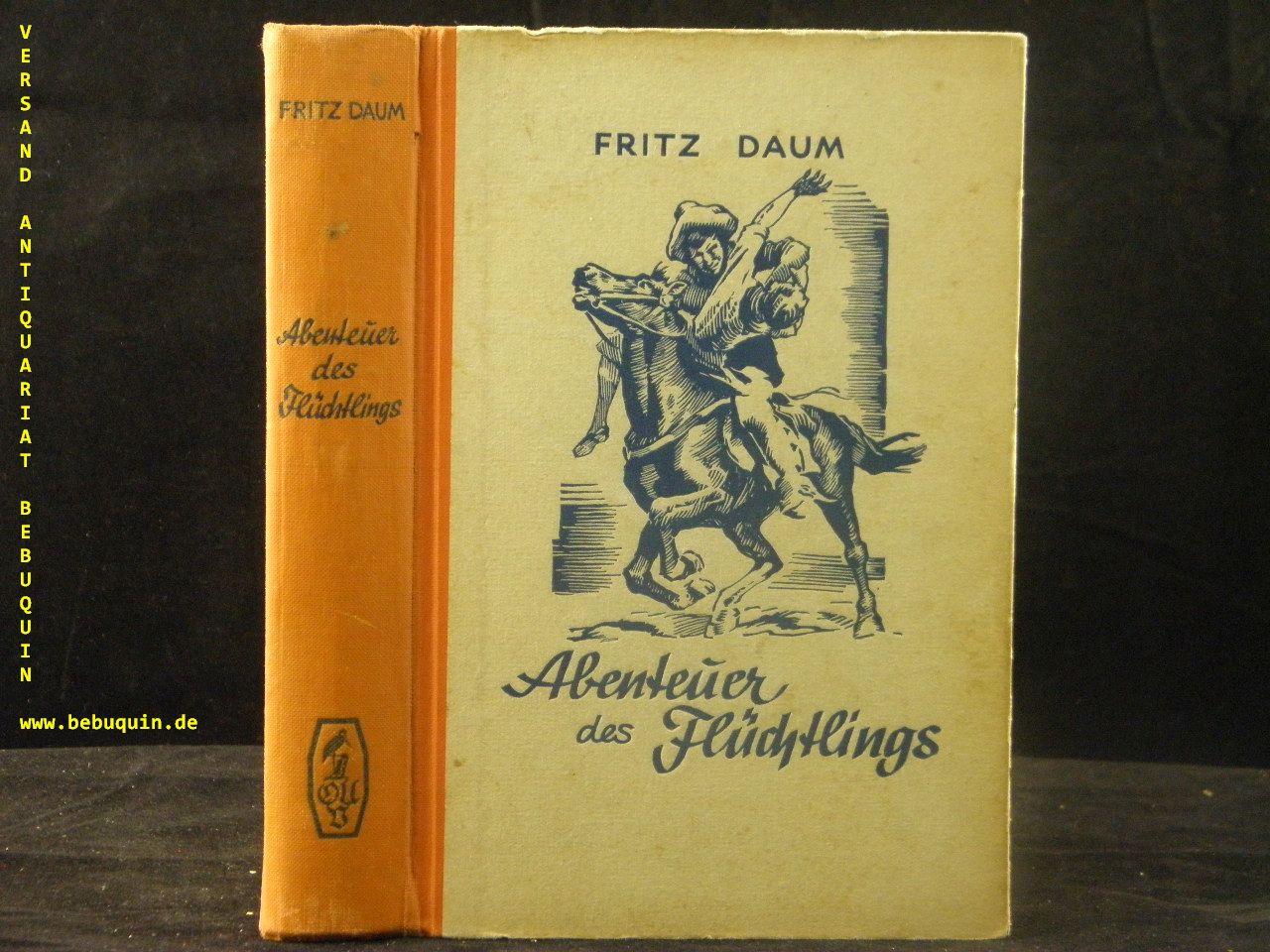 DAUM, Fritz: Abenteuer de Flüchtlings. Abenteuer-Roman. Berlin (Uhlmann), 1942. 293 (1) S. ill. OHLn. leicht gebräunt, vorderes Gelenk gelockert, sonst gut erhalten. = Uhlmann – Bücher. EA.