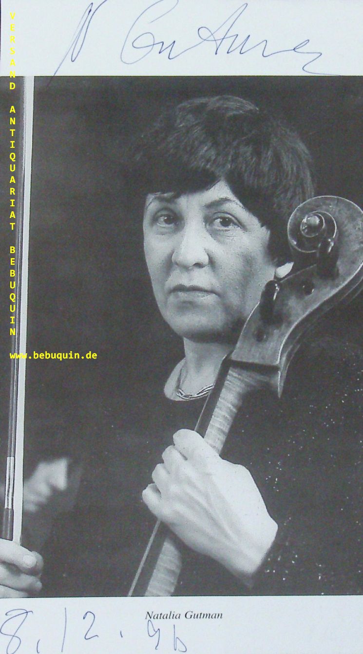 GUTMANN, Natalia (Cellistin): eigenhändig signierte und datierte Portraitseite. München (Herkulessaal), 8.12.1996. 21 x 12 cm. 1 Bl.
