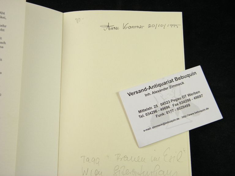 KROMMER, Anna: Staub von Städten. Ausgewählte Gedichte. Hrsg. und eingeleitet von Sabine Prem. Wien (Theodor Kramer Gesellschaft), 1995. 85 S. mit Zechnungen von Peter A. W. Kubincan. ill. OPb. EA mit einer datierten Signatur der Verfasserin auf Vortitel.