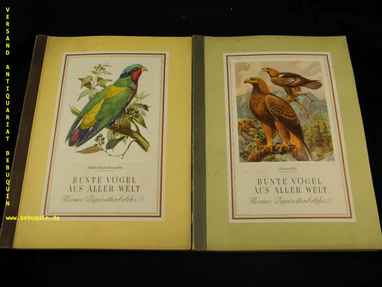 SAMMELBILDERALBEN.– KOSMOS ZIGARETTENBILDER.– Bunte Vögel aus aller Welt. Teil I und Teil II. 2 Bände. Memmingen, 1953. 4°. mit 300 farb. Sammelbilder. (komplett). farb. ill. OKart. Einbände gering angeschmutzt, innen tadellos.