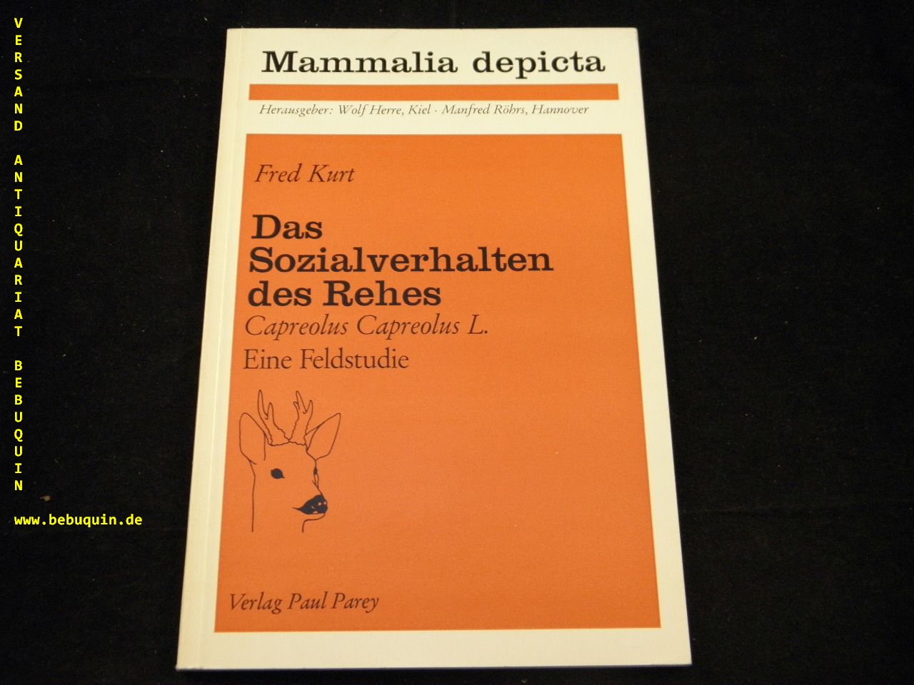 ZOOLOGIE.– KURT, Fred: Das Sozialverhalten des Rehes. (Capreolus Capüreiolus L.) Eine Feldstudie. Hamburg (Parey), 1968. Gr. 8°. 102 (2) S. mit zahlr. Abb. ill. OKart. gut erhalten. = Mammalia depicta. EA.