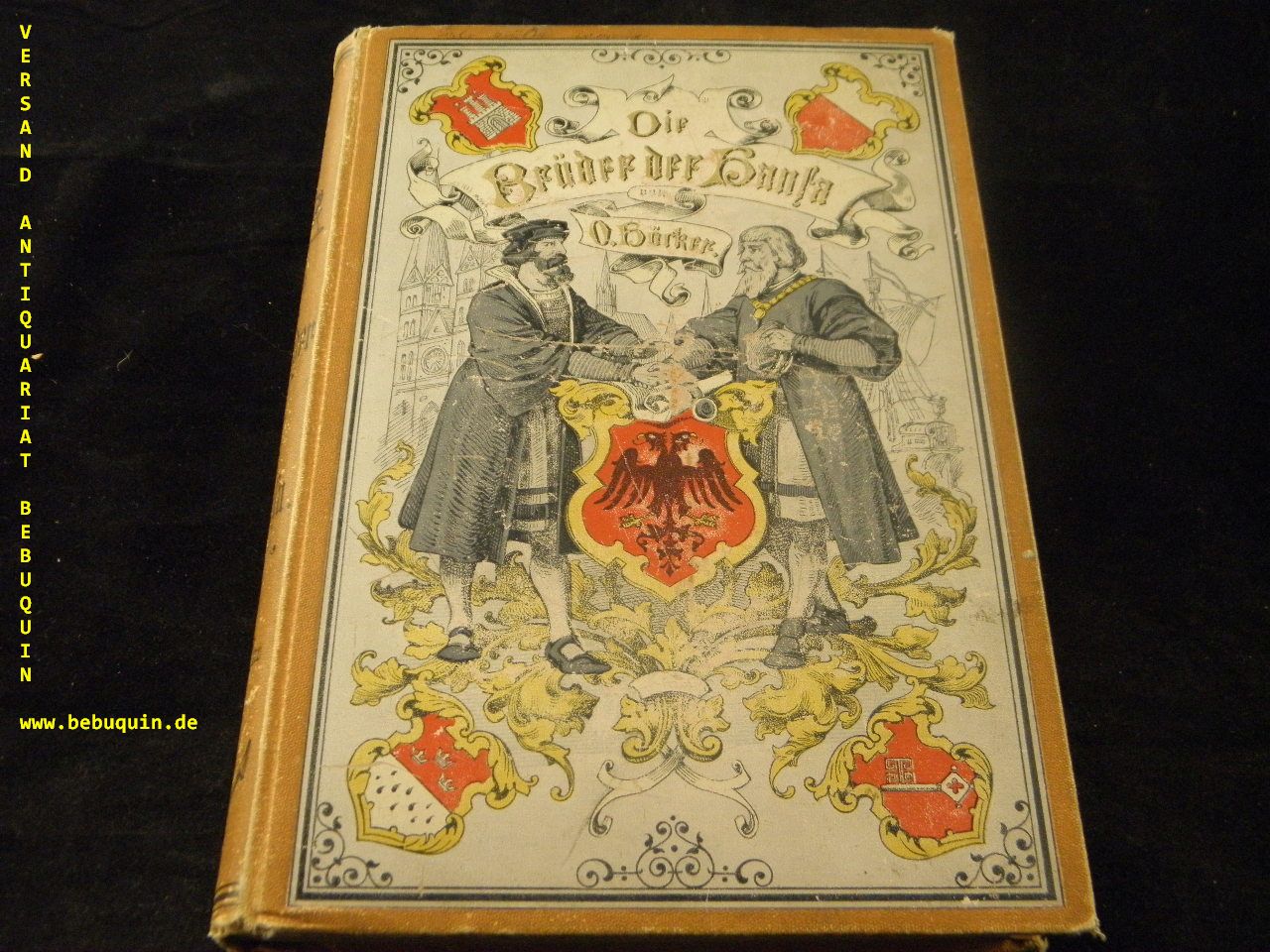 HÖCKER, Oskar: Die Brüder der Hansa. Historische Erzählung aus der Blütezeit des norddeutschen Kaufmannsbundes. Der reiferen Jugend zugeeignet. Leipzig (Hirt & Sohn), 1886.. Gr. 8°. 254, 16 S. mit vielen Abb. von Johannes Gehrts. ill. OLn. Titelbild am Rand hinterlegt, WaV, sonst gutes Ex. = Merksteine deutschen Bürgertums, Bd. 1. EA Klotz 2729/16.