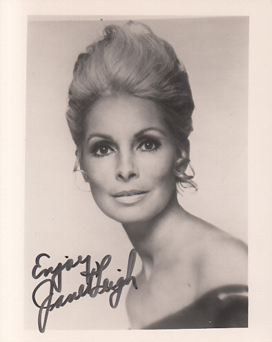 LEIGH, Janet: eigenhändige Unterschrift und Gruss auf Original Foto. 0.O., o.J. 12,5 x 10 cm. S/W. Janet Leigh (1927 – 2004) war ein US-amerikanische Schauspielerin.