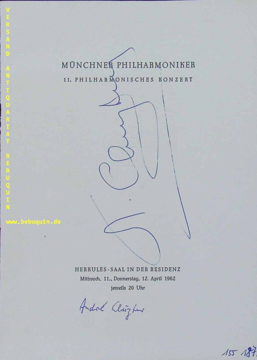 CLUYTENS, André (Dirigent): eigenhändig signiertes Programm. München, 11.4.1962, 20,5 x 14,5 cm. 2 Bl. .