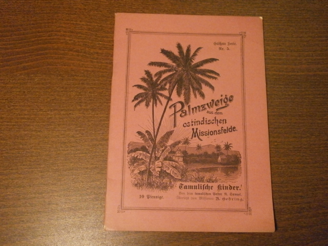 KOLONIEN.– SAMUEL, N.: Tamulische Kinder. Ein Büchlein für deutsche Kinder, die für das Missionswerk in Tamulenland beten und ihr Scherflein beitragen. D.v. A. Gehring. Leipzig (Evangelisch-lutherische Mission), 1900. 41 S. mit 13 Abb. ill. OBr. = Palmzweige vom ostindischen Missionsfelde, Groß-Serie Nr. 5.
