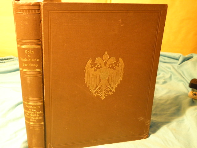 MEDIZIN.– LENT, Eduard: (Hrsg.) Köln in hygieinischer Beziehung. Festschrift für die Teilnehmer an der XXIII. Versammlung des Deutschen Vereins für öffentliche Gesundheitspflege zur Feier des XXVjährigen Bestehens des Vereins. Köln (Dumont), 1898. 4°. VII, 545 S. mit vielen Plänen und Abb. OLn mit goldgeprägtem Doppeladler. Eine Ecke leicht gestaucht, vorderes Gelenk etwas locker, sonst gut erhalten Sehr seltene EA dieser Festschrift. Eduard Lent (* 16. November 1831 in Wesel; † 25. April 1911 in Köln) war ein deutscher Mediziner, Geheimer Sanitätsrat und Autor. Er galt als Vorkämpfer einer sozialhygienischen Bewegung. (Wikipedia)
