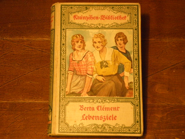 CLEMENT, Berta: Lebensziele. 24. Aufl. Stuttgart (Union), ca 1925. kl. 8°. 368 S. mit 8 Textzeichnungen von Gustav Traub. ill. OLn. mit mont. Farbbild. hinteres Gelenk offen. = Kränzchen – Bibliothek.